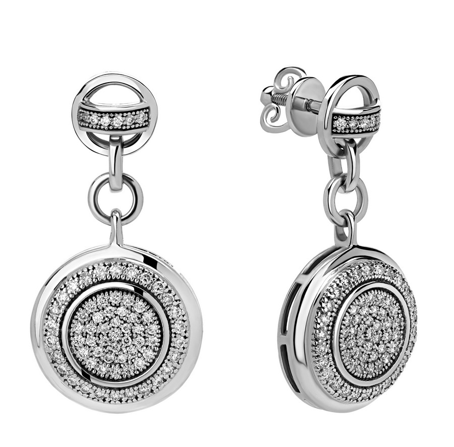 —Женские серьги из белого 585 золота с бриллиантами природными